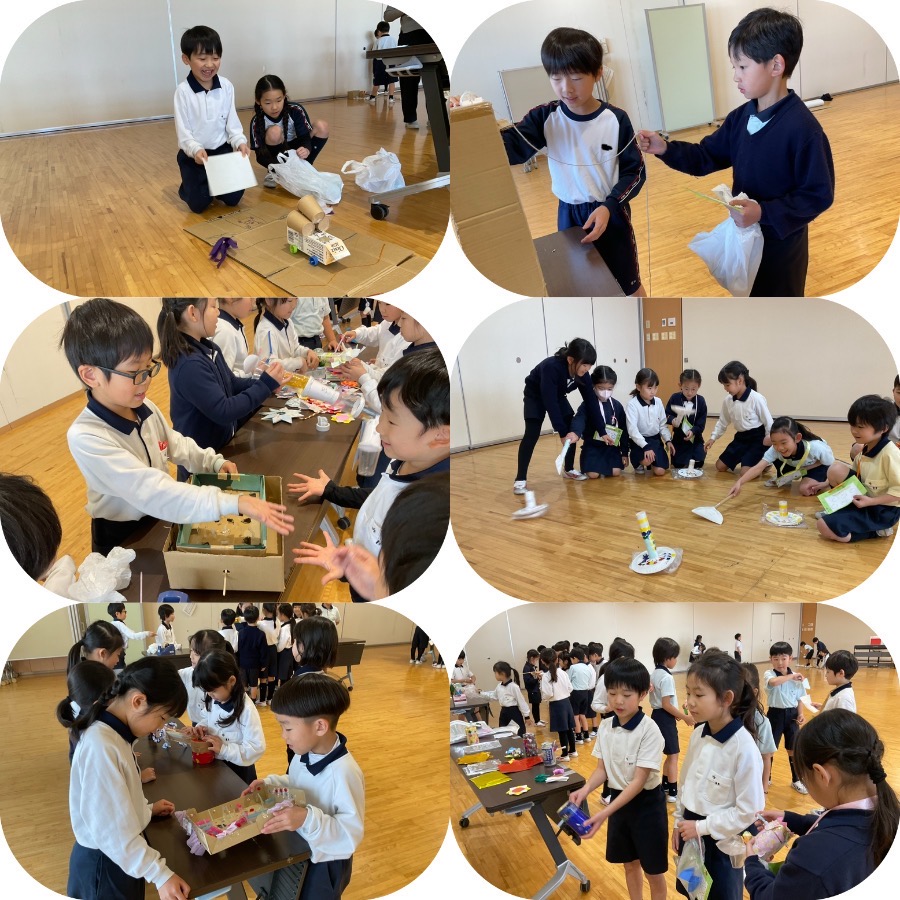 生活科の学習で、ゴムや風、磁石などの力を使った「うごくおもちゃ」作りに取り組みました。