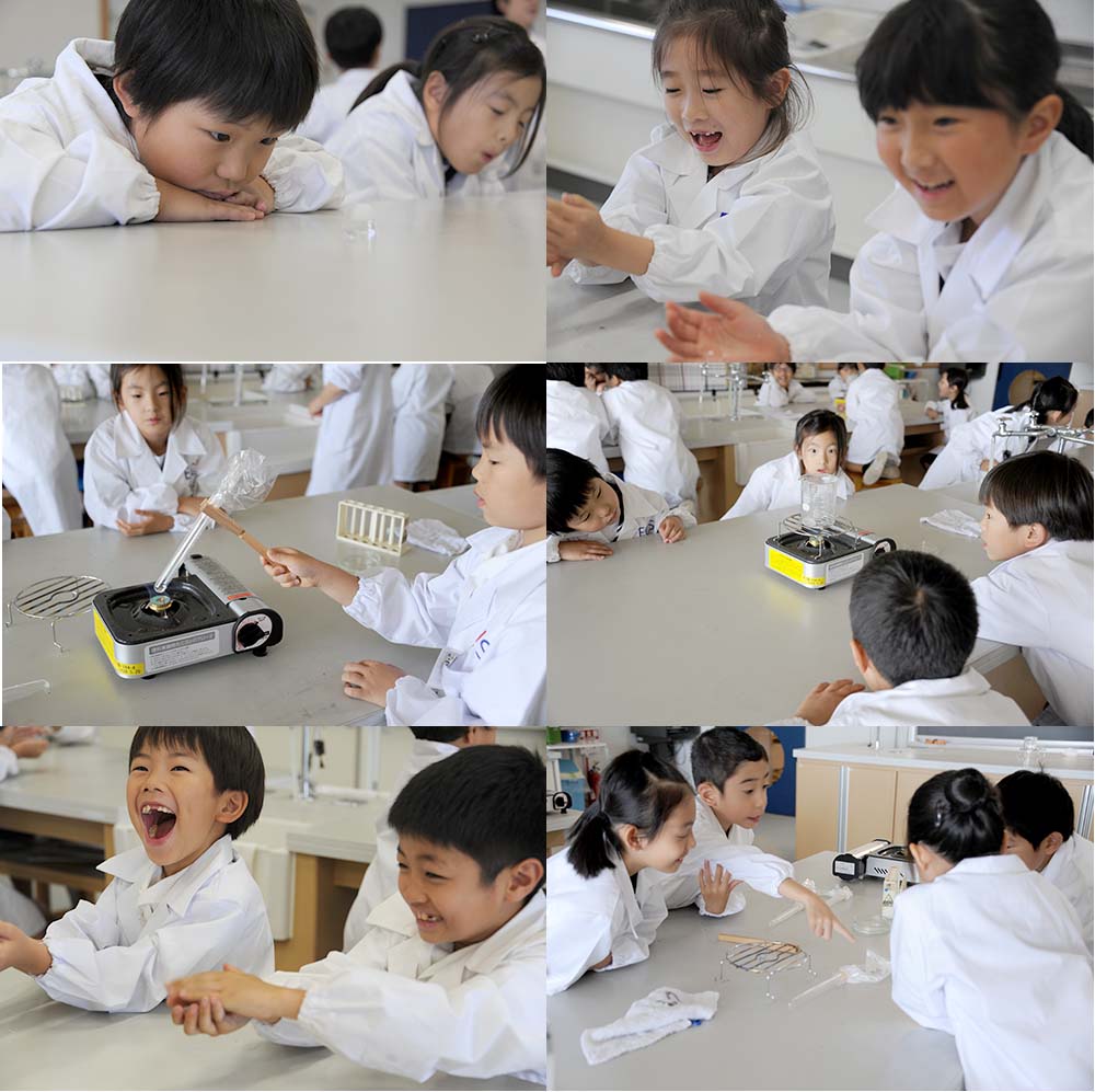 こどもたちはみんな、初めての火を扱う実験に緊張しつつも、興味津々に現象を観察していました。