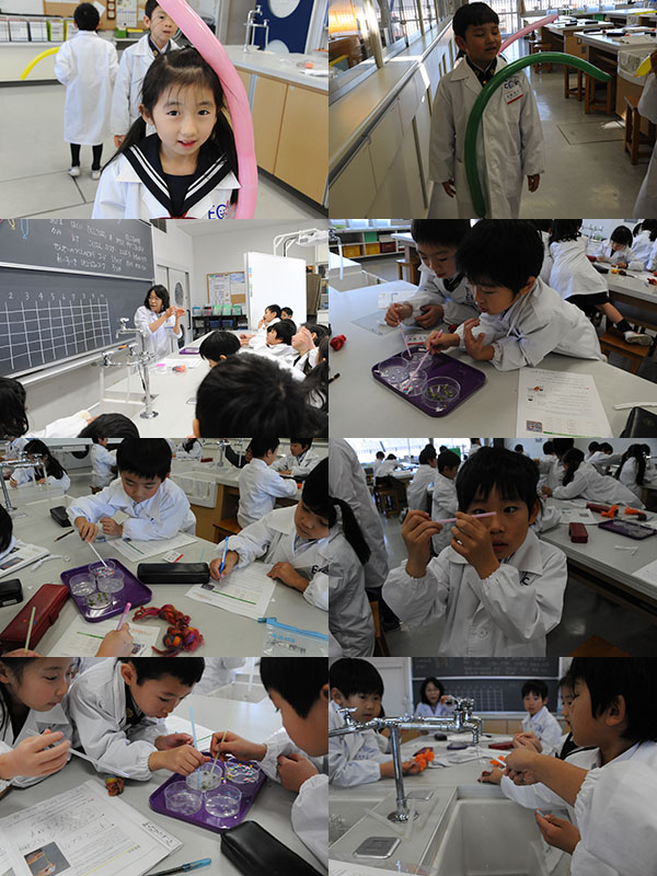 目に見えない気体(酸素、二酸化炭素)の性質を様々な方法で調べ、どのような性質の違いがあるのかを知りました。