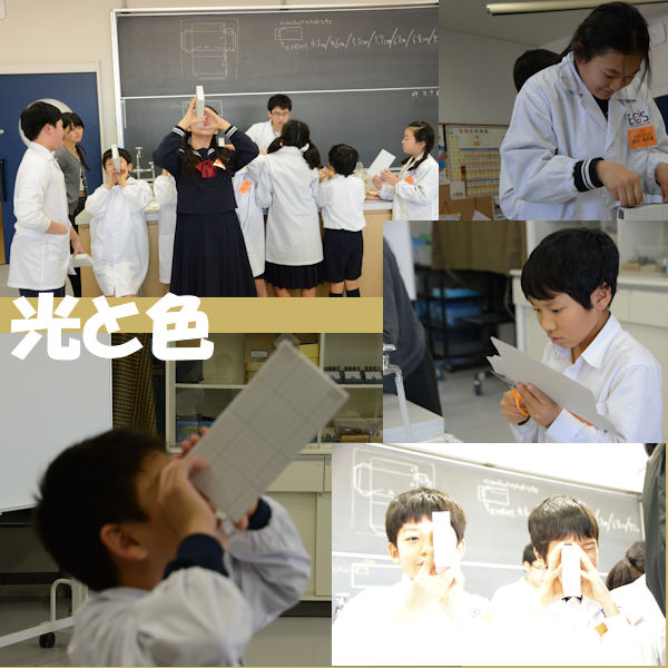 白く見える電灯の灯り、オレンジや白に見える太陽光。それらは本当に白いのでしょうか。フィルムを貼った箱から見える光は、いつも見ている光の色とは違います。そのなぞは?