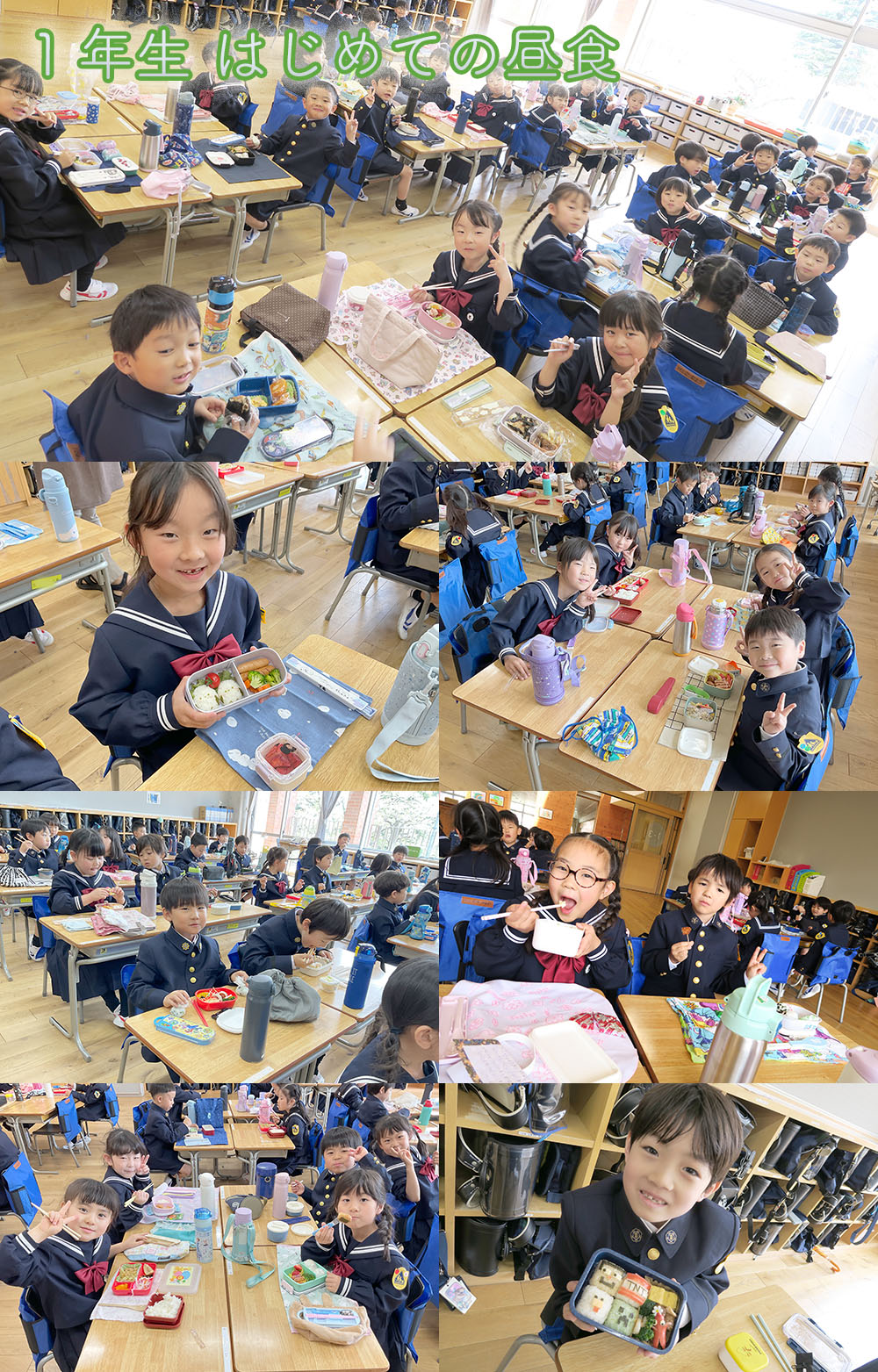 今日から昼食を食べて下校する1年生。午前中は、視力検査や聴力検査を行ったり、写真撮影を行ったりしたため、みんなお腹ぺこぺこの様子でした。食事の準備ができたら、大きな声で「いただきます!」みんな笑顔で食べていました。来週からは午後のお勉強も始まります。もりもり食べて、元気いっぱい過ごしてほしいと思います。