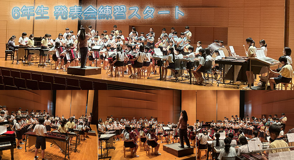 9月30日(土)の学芸発表会で、6年生は合奏と合唱を披露します。今日から記念ホールでの合奏練習が始まりました。音楽室での練習と比べて、やはり音の響きが違います。6年間の集大成となるよう、皆で気持ちを一つにし、よりよい合奏を作り上げてもらいたいと思います。