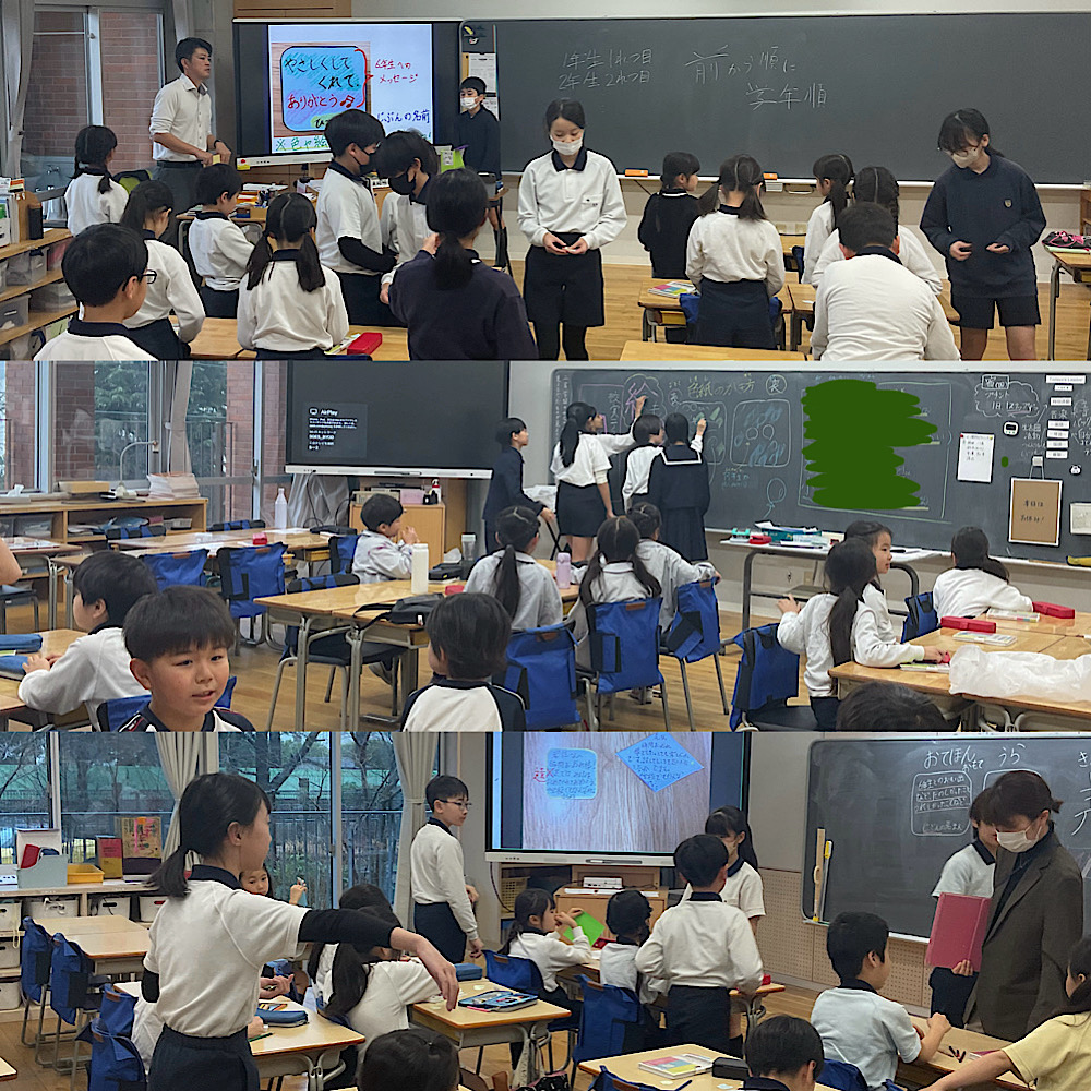 今日、6年生は校外学習へ行っています。そのすきに、日頃から生活団でお世話になっている下学年が5年生を中心に6年生を送る会に向けて準備を進めました。