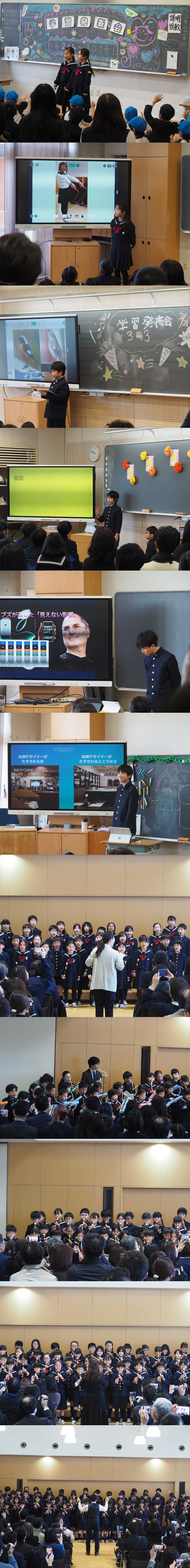 本校の学びのスタイルである〝主体的で発展的な学び〟の集大成として位置付けているのが、21日(土)に行った学習発表会です。学習発表会では、この1年に取り組んだことについて分かったことや考えたことなどを、一人一人がスライドを作ってみんなの前で発表しました。どの子も聞き手を意識して身振り手振りを交えたり、スライドを効果的に見せたりしながら、上手に発表することができました。