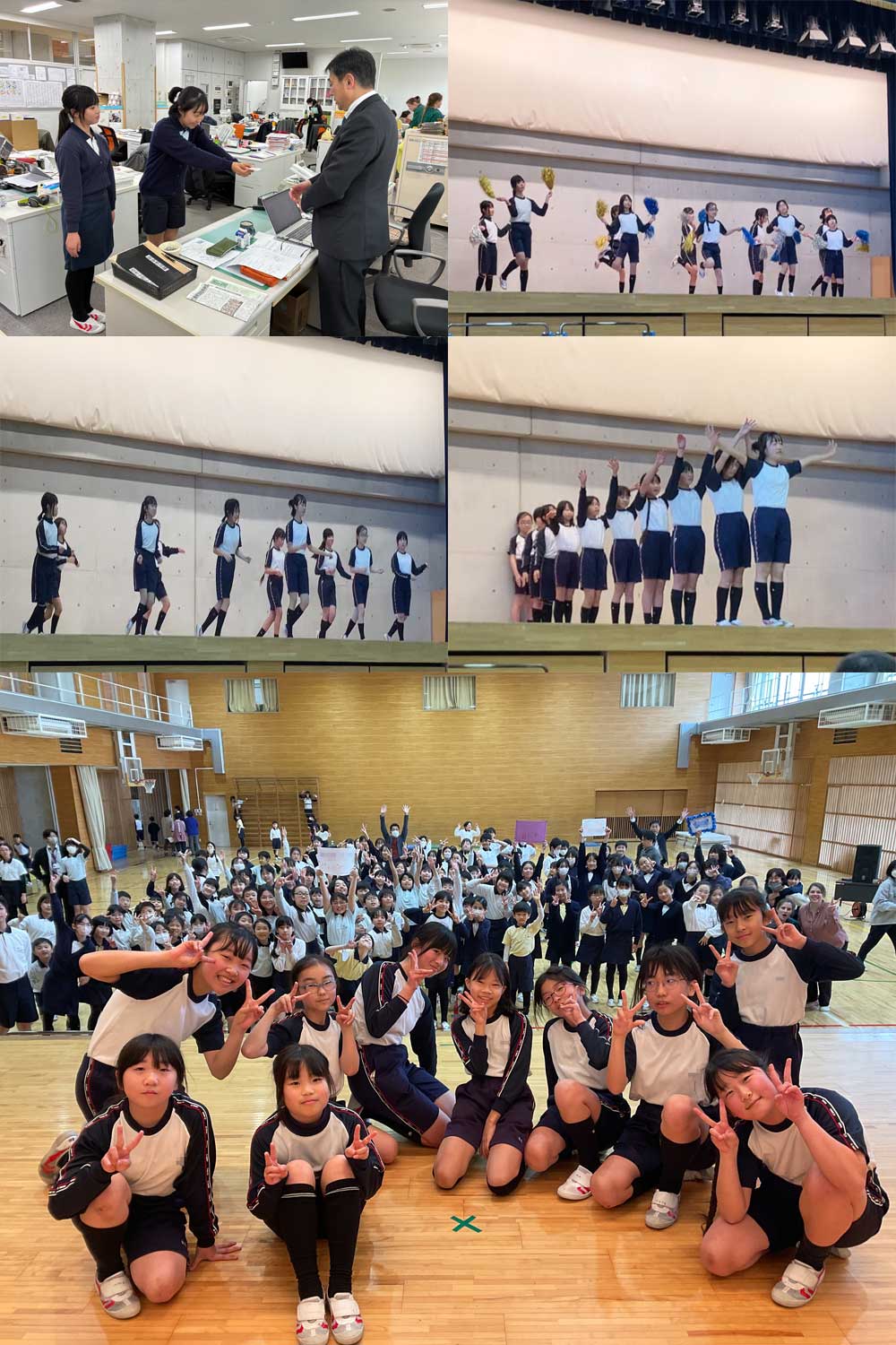 ダンスクラブでは、6年生を中心に4年生も積極的に意見を出しながらみんなで振り付けを考えたり、息を合わせて体を動かしたりポーズを決めたりする練習に取り組んできました。その成果を、2月26日の昼休みに全校児童の前で披露しました。発表会の前には、職員室に手作りの招待状を届けてくれました。